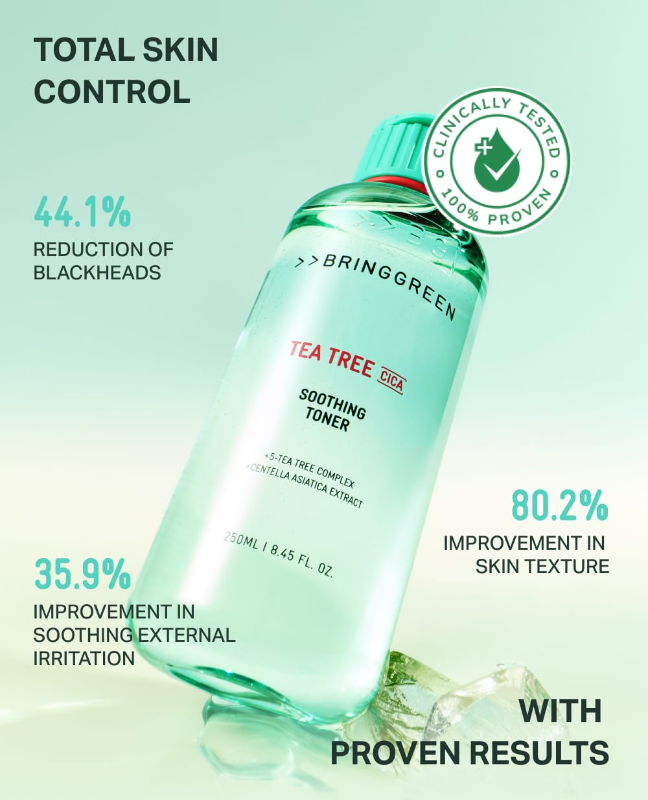 This toner helps to soothe problematic skin with a gentle formula that combines Tea Tree and Cica ingredients.Effectively soothes irritatied skin with 3 layers of Tea Tree and Centella Asiatica Extract.Contains AHA to remove excessive dead skin cells and sebum that could block your pores.Ther water texture provides deep hydration to skin along with a cooling effect and leaves a refreshing finish.Clinical test completed.Suitable for acne-prone skin.