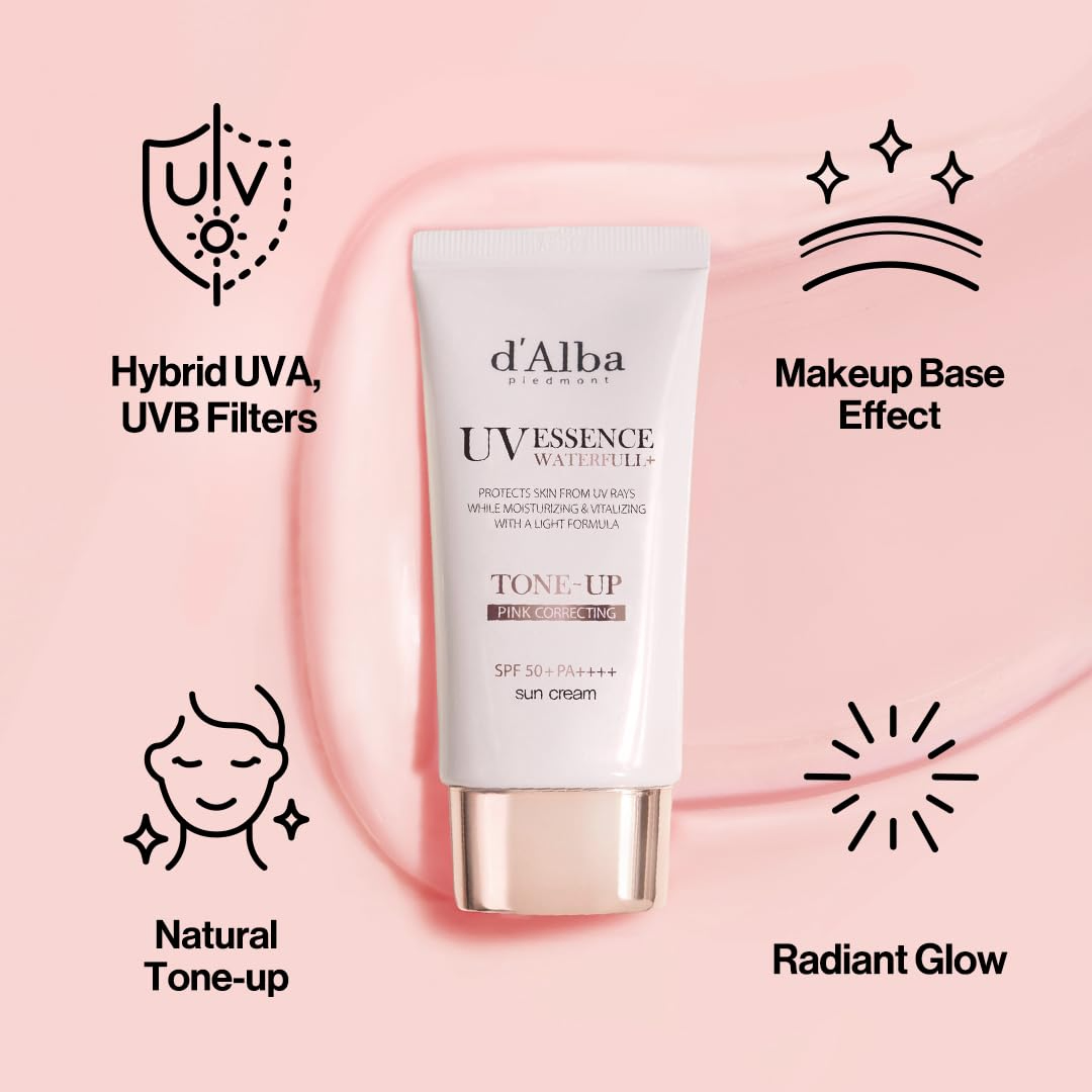 d'Alba Waterful Tone Up Sunscreen SPF 50+ PA++++ is a multi-functional sunscreen that offers high-level sun protection while brightening and evening out the skin tone. This lightweight, water-based formula absorbs quickly, leaving a smooth, matte finish with a natural tone-up effect. Infused with white truffle extract and niacinamide, it not only shields your skin from harmful UV rays but also provides hydration and radiance, making it an ideal daily sunscreen for all skin types.