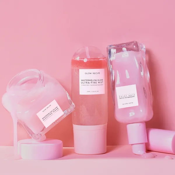 Watermelon Glow Pink Juice Oil-Free Moisturizer 90% of this silky glow moisturizer is spiked with vitamin and amino acid-rich watermelon extract, plumping hyaluronic acid, and soothing botanicals like peony and jasmine extracts. This 100% oil free cooling gel-emulsion absorbs instantly to seal in hydration and prep skin for the day ahead. Antioxidants guard against free radicals and repair damaged cells along the way. Used morning and night, it drenches skin in luscious, long-lasting moisture.