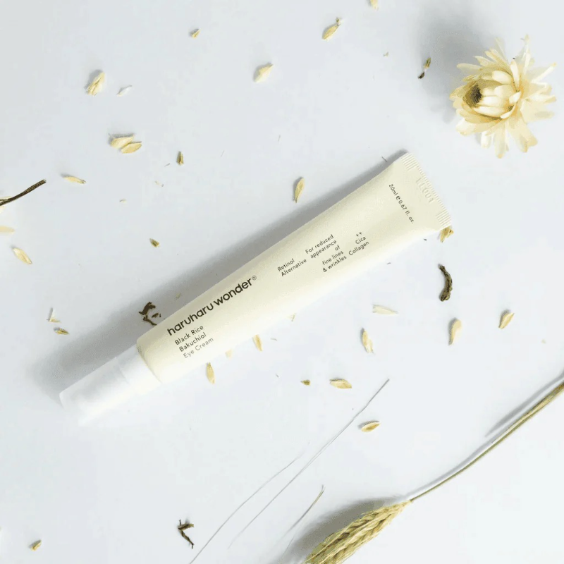 Haruharu Wonder Black Rice Bakuchiol Eye Cream is a rejuvenating eye cream that targets fine lines, wrinkles, and signs of aging around the delicate eye area. Formulated with bakuchiol, a gentle alternative to retinol, and fermented black rice extract, this eye cream provides intense hydration while improving skin elasticity. Its lightweight texture absorbs quickly, leaving the eye area looking smoother, firmer, and more youthful.