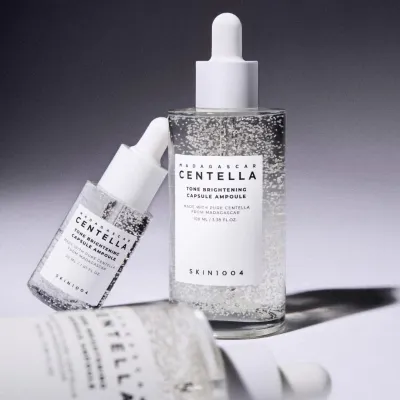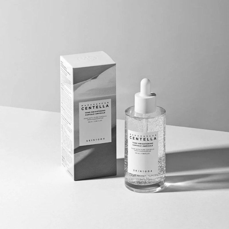 SKIN1004 Madagascar Centella Tone Brightening Capsule Ampoule is a brightening serum designed to even out skin tone and enhance radiance while providing soothing care. Enriched with Centella Asiatica extract from Madagascar and brightening capsules, this ampoule helps to reduce the appearance of dark spots, hyperpigmentation, and dullness.